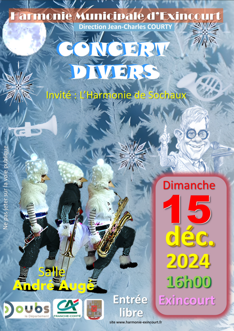 L’Harmonie Municipale d’Exincourt sera sur scène pour son Concert Divers et partagera l’affiche avec l’Harmonie de Sochaux, invitée pour l’occasion. Deux ensembles, une passion commune : la musique !