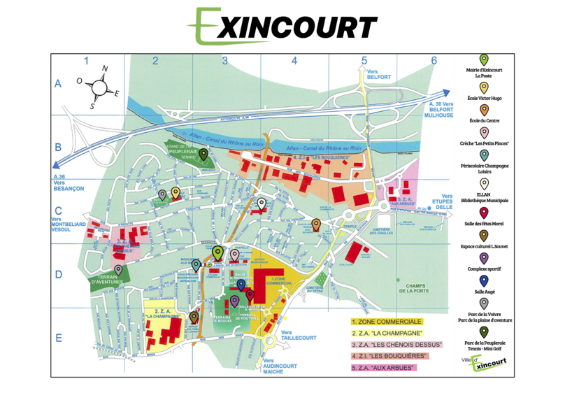 Exincourt partage des frontières avec différentes communes telle que Montbéliard, Audincourt, Etupes, Taillecourt et Sochaux, ce qui dynamise la vie locale.